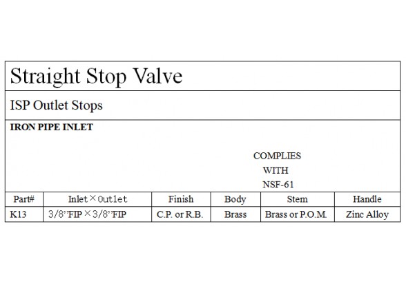 Brass Supply Stop Valve